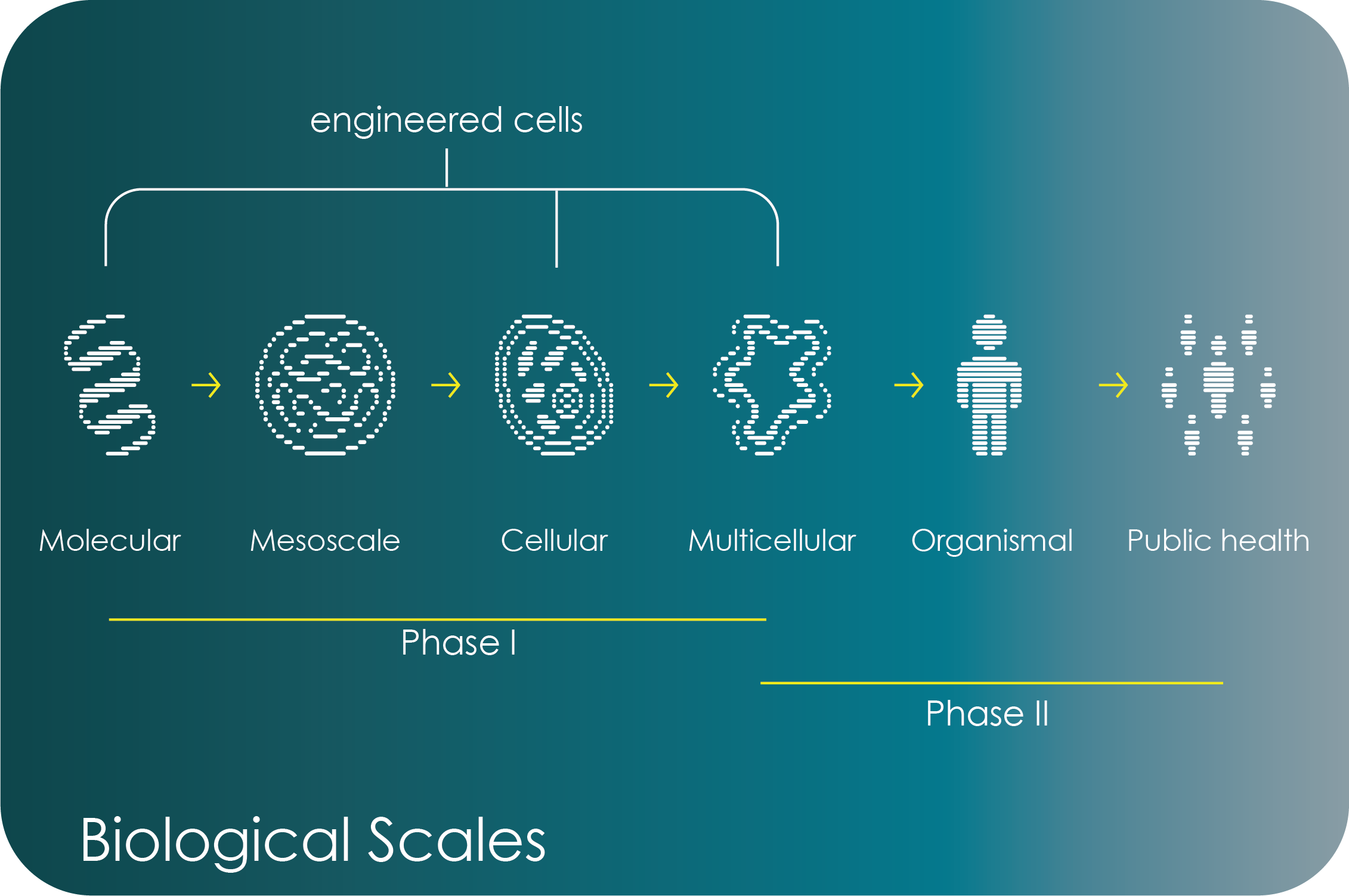 At AITHYRA, we will pursue research questions that span biological scales, reaching from topics at the molecular scale to questions of public health. This broad reach will be built in two Phases. Our current focus is on Phase I, ranging from the molecular to the tissue/organoid scale.
